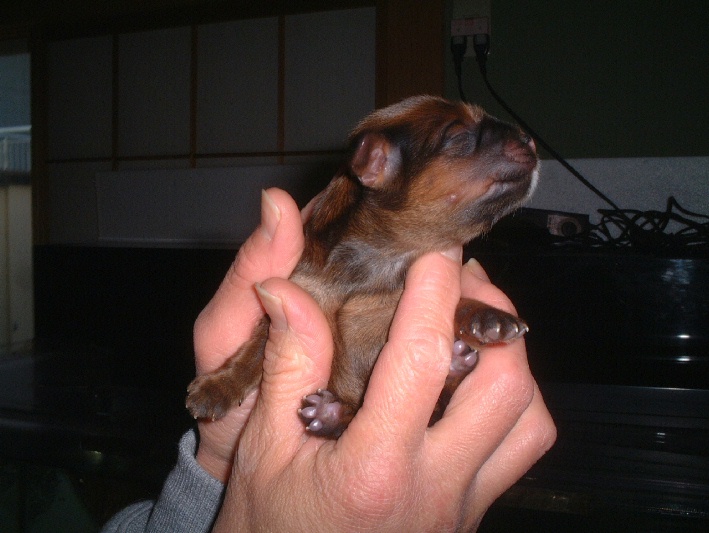 クラリスのBABYちゃん クラリスとテンマのBABYちゃん 1/28生まれ 250グラム かわいすぎるよね! 初めて4本の足で立ったよ! パパに似ている目 お鼻 ママ似の耳 さて足は? クリクリの目!! おねむです チワワパパ似の目 お鼻 ダックスママ似の耳 さて足は? お別れ最後の夜が近づいて あたしの枕の隣で